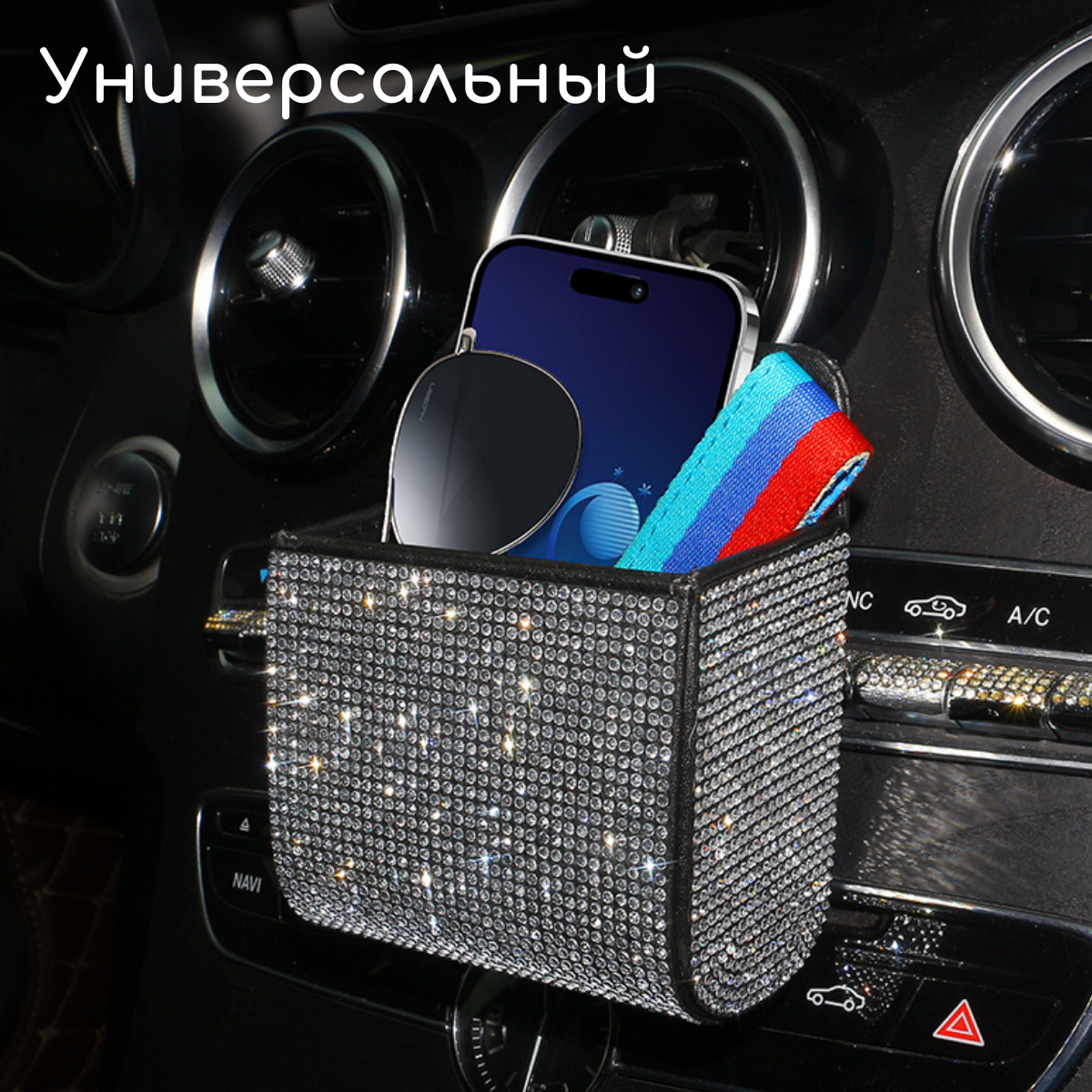 Карман органайзер в автомобиль на воздуховод со стразами информация: