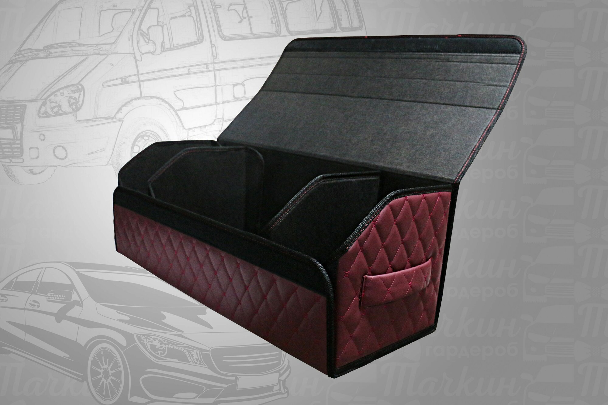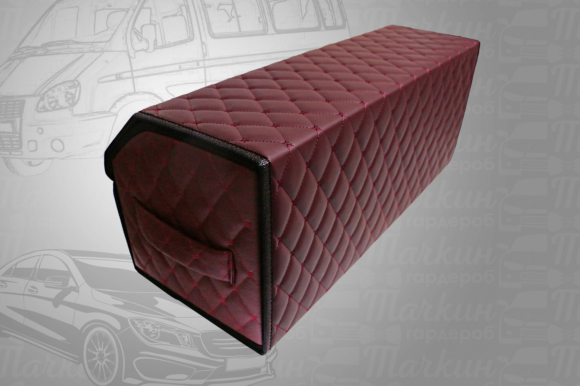 Аксессуары для авто/Органайзер в багажник 70*30*35 сота бордо строчка бордо/черный