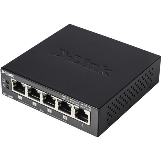 Коммутатор D-Link (DGS-1005P/A1A) Неуправляемый, 5 ports 10/100/1000Base-T, PoE-бюджет 60 Вт