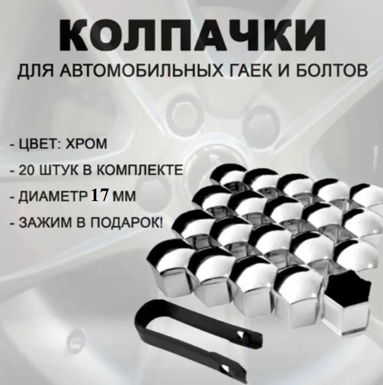 Колпачки для автомобильных гаек и болтов, декоративные колпачки на колеса автомобиля, серебряные 17 мм, 20 шт. информация: