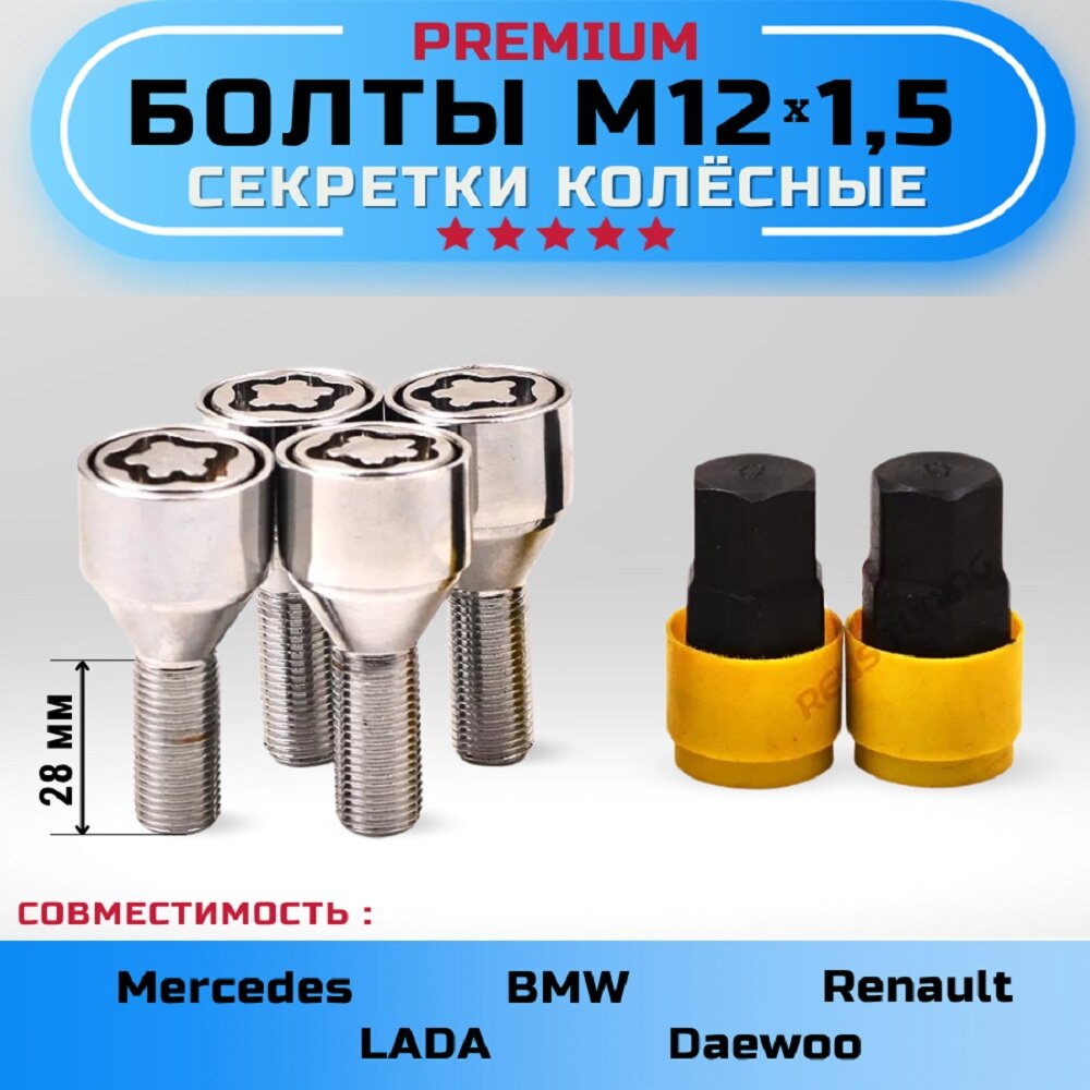 Секретные гайки/ Колесные секретки резьба M12х1,5/ секретки / секретки на колеса