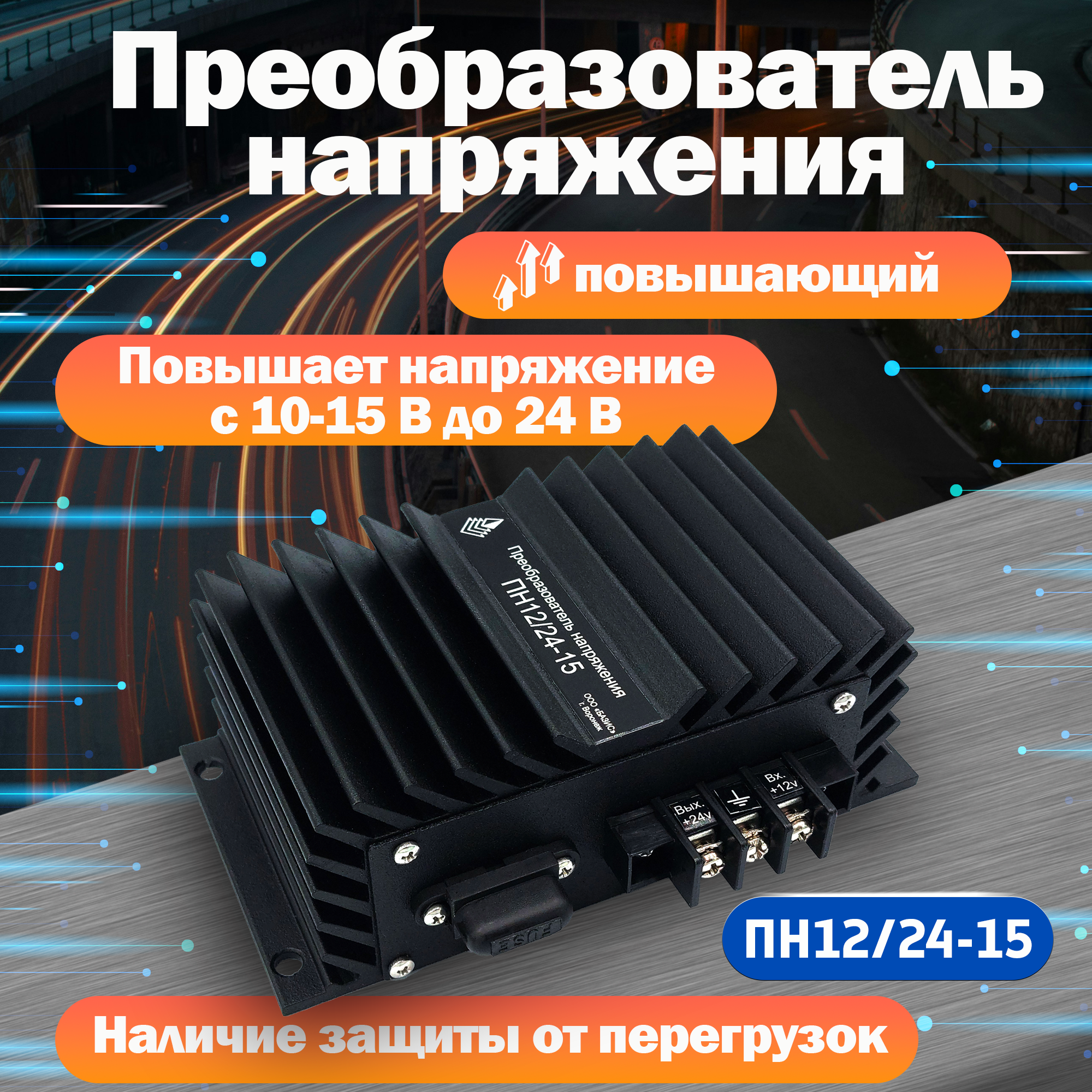 Повышающий автомобильный преобразователь напряжения ООО "Базис", модель 12-24-15 информация: