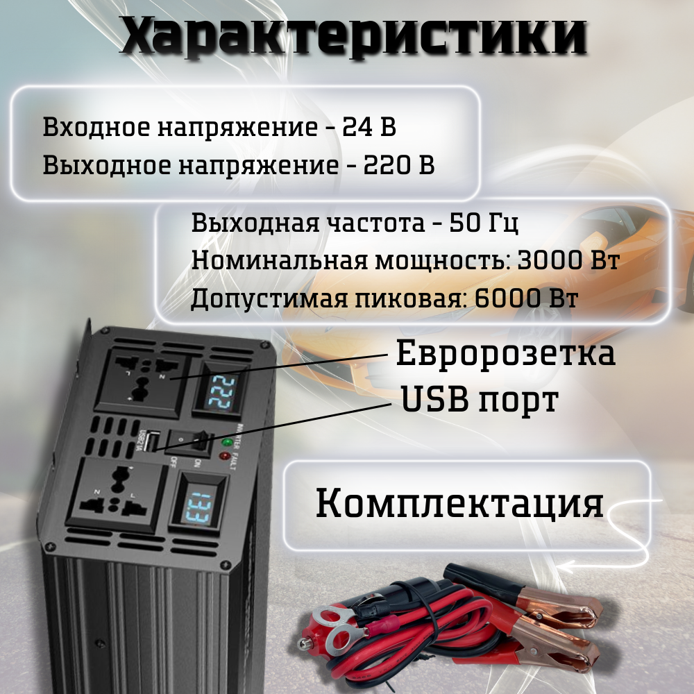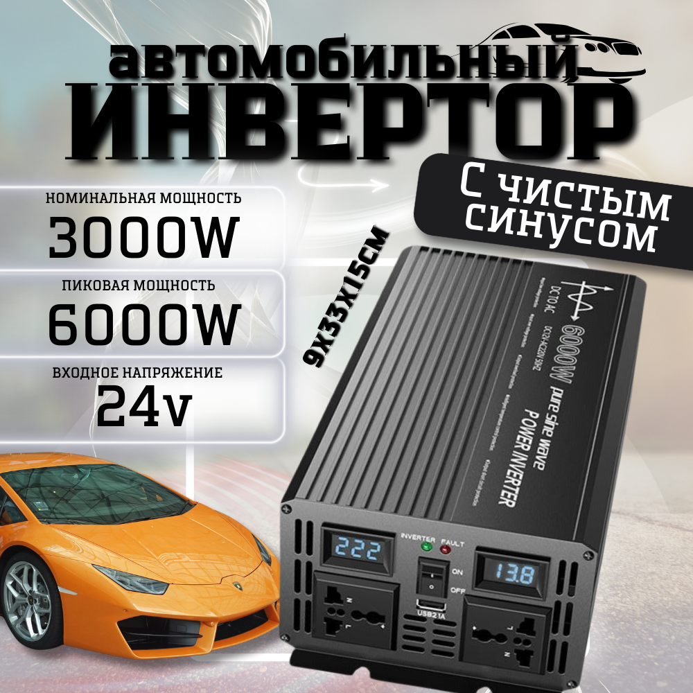 Автомобильный инвертор преобразователь напряжения с чистой синусоидой 6000 Вт/24В информация: