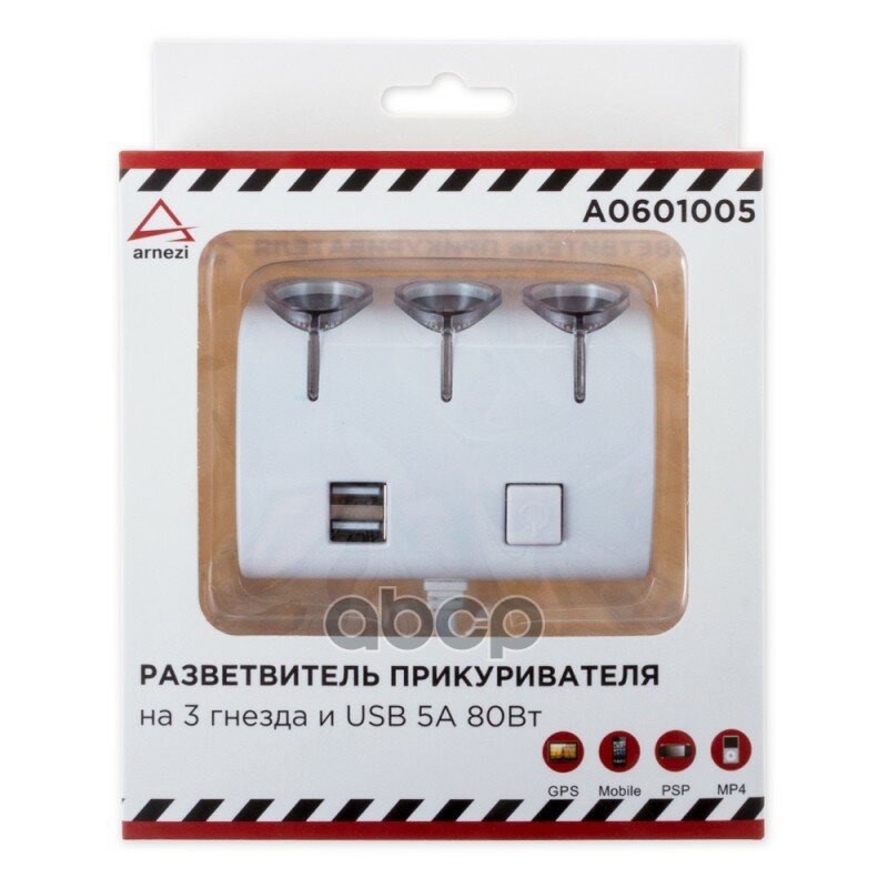 10 цен на Разветвитель Прикуривателя На 3 Гнезда И Usb 5 А. 80 Вт. 12 В/24 В. ARNEZI арт. A0601005