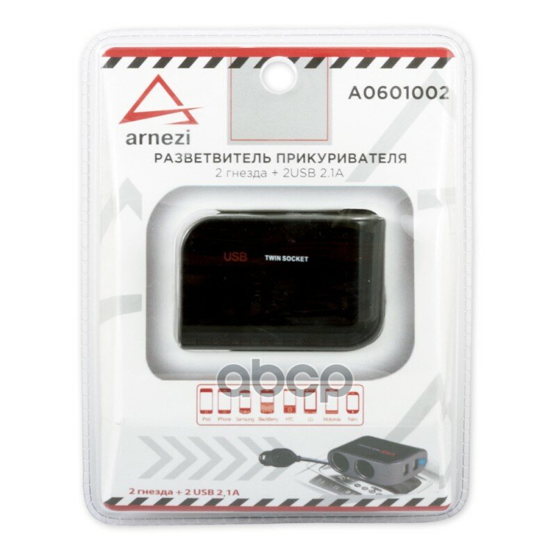 10 цен на Разветвитель Прикуривателя На 2 Гнезда И 2 Usb 2,1А 60Вт 12В/24В ARNEZI арт. A0601002