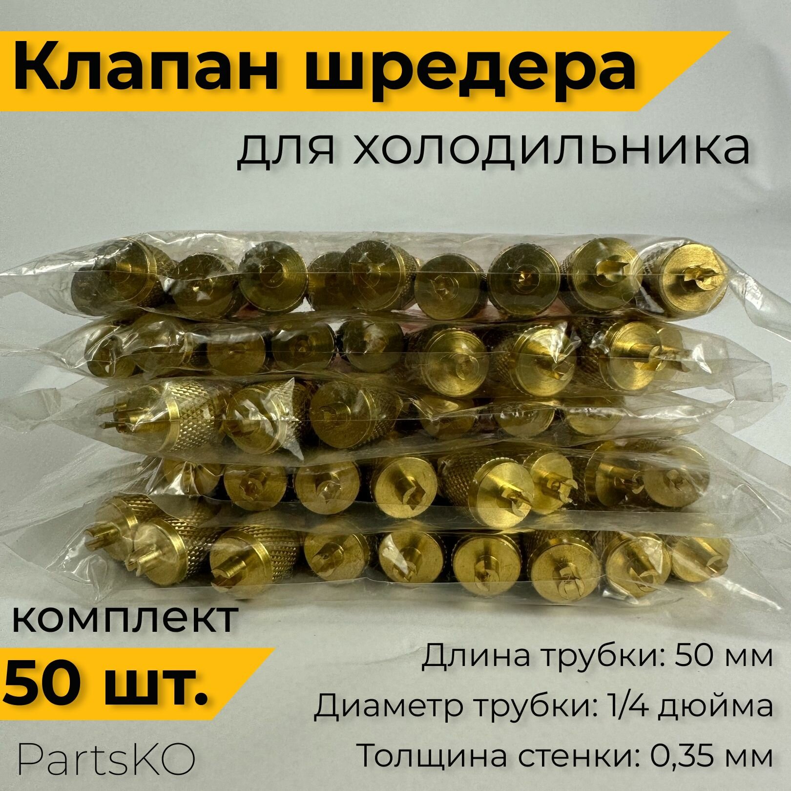 10 цен на Клапан Шредера комплект 50 шт. Заправочный клапан холодильника из меди. Длина 70 мм. Производство Италия. Универсальная запчасть.