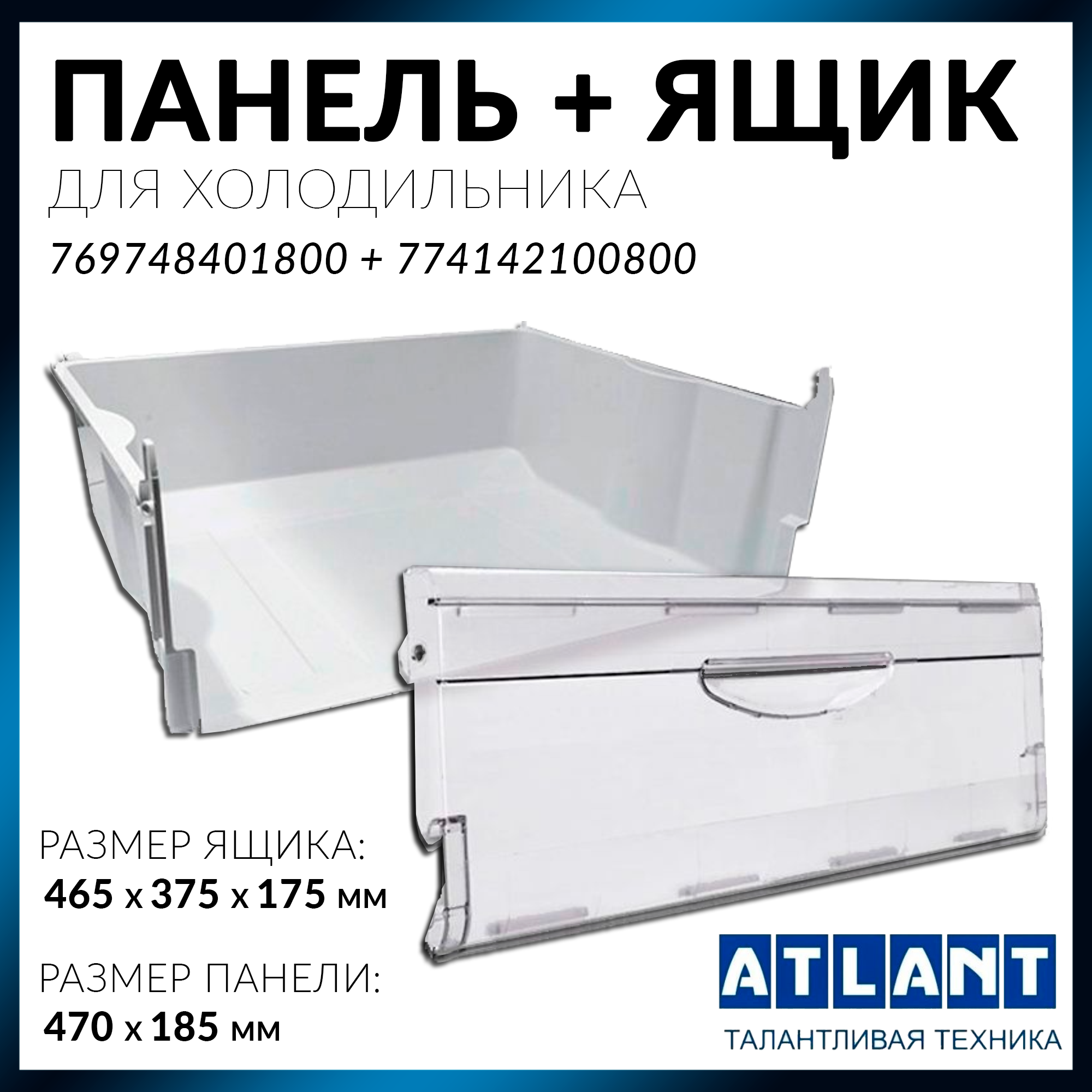 Ящик для холодильника Atlant и панель ящика морозильной камиеры Атлант 769748401800 + 774142100800 информация: