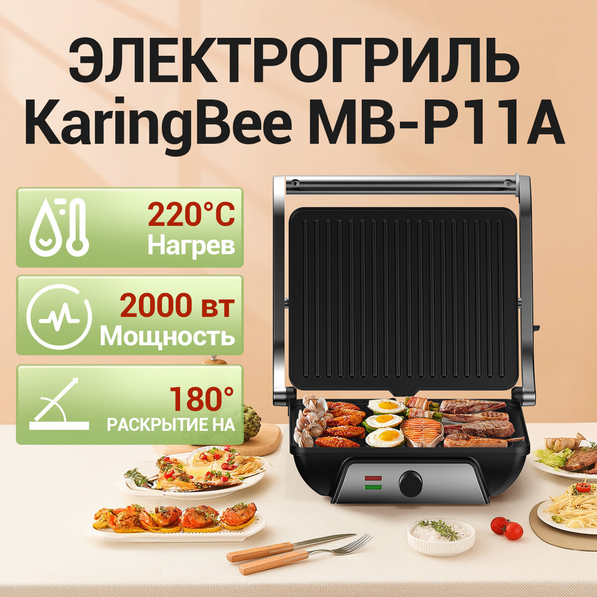 Электрогриль KaringBee MB-P11A/Антипригарное покрытие информация: