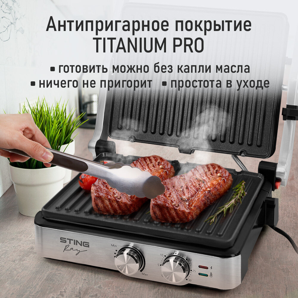 STINGRAY ST-SM1205A черный/сталь ЭлектроГриль информация: