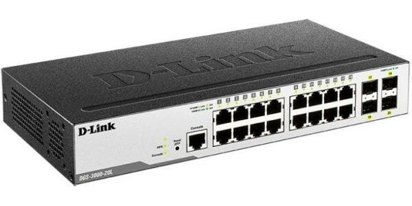 Коммутатор D-link DGS-3000-20L, управляемый, Количество портов: 16x1 Гбит/с (DGS-3000-20L/B1A)