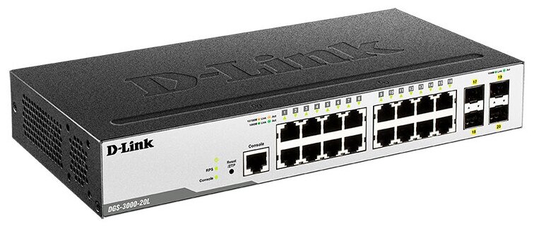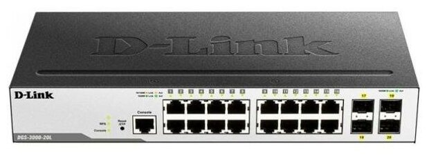 DGS-3000-20L/B1A Управляемый коммутатор 2 уровня с 16 портами 10/100/1000Base-T и 4 портами 1000Base-X SFP, RTL {5} 15 394 ₽
