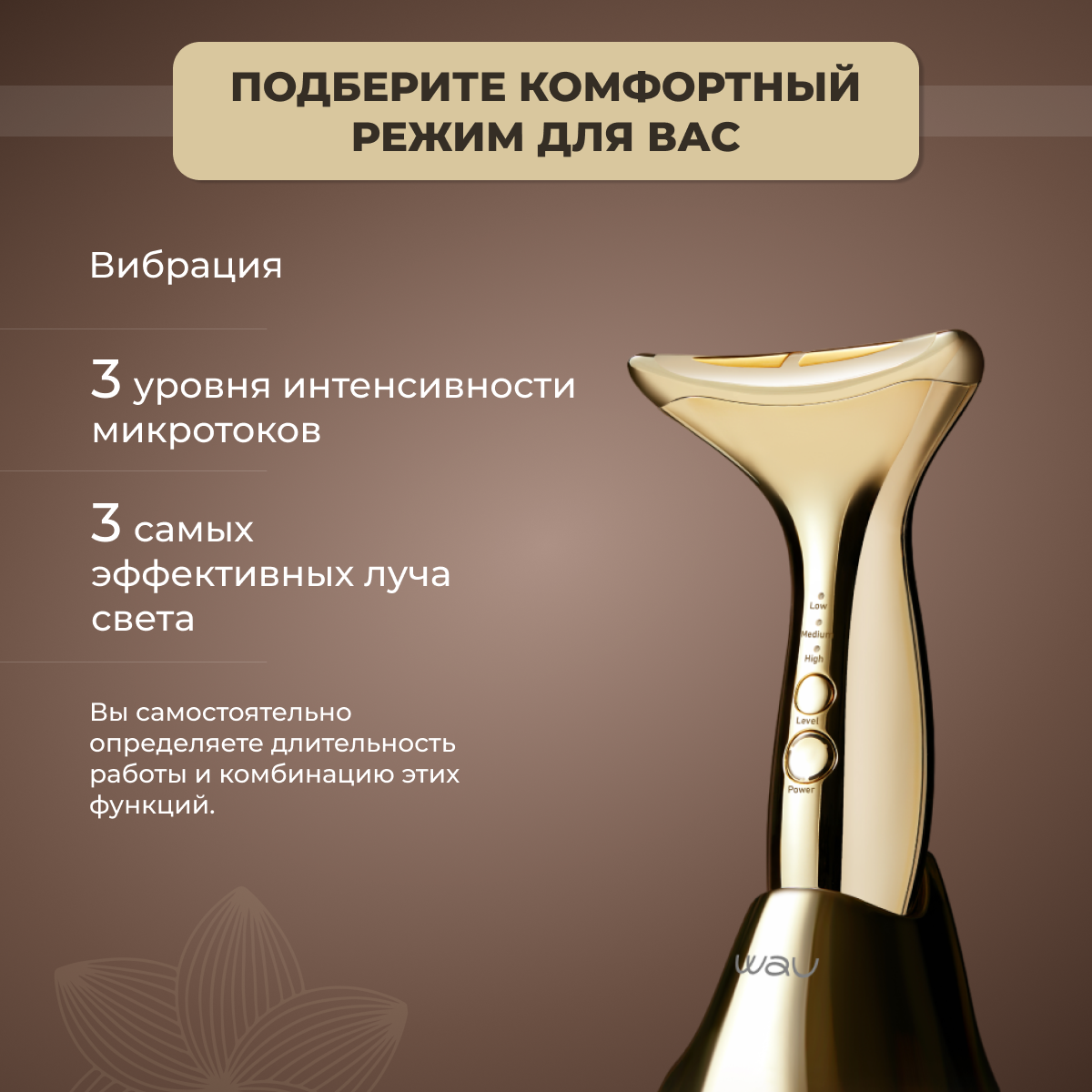 | Принцип работы | вибрация / микротоки / светотерапия |