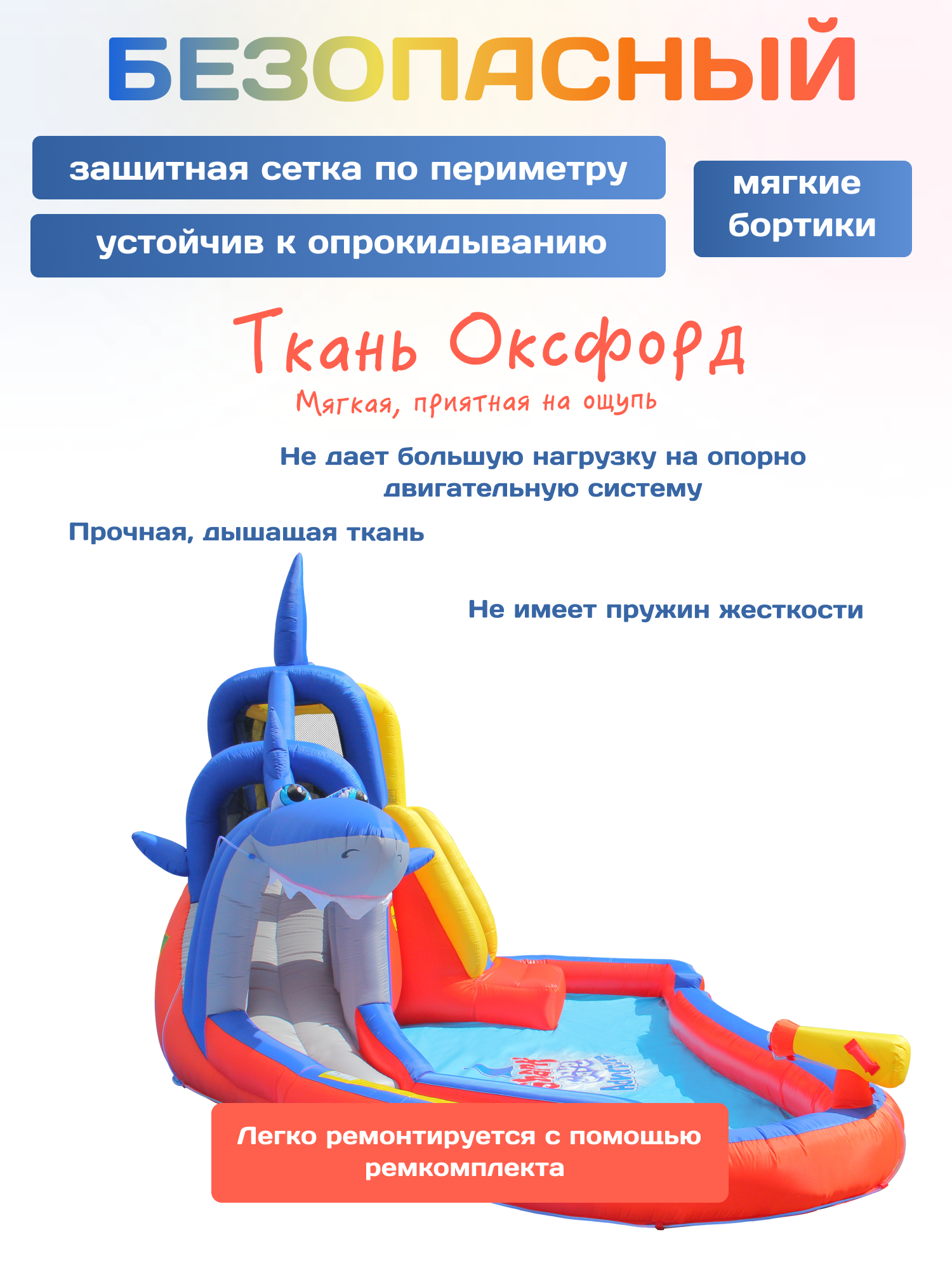 | Комплектация | Надувной батут, насос, колышки для крепления к земле, ремкомплект, сумка для хранения и перевозки, инструкция, трубки для подведения воды |