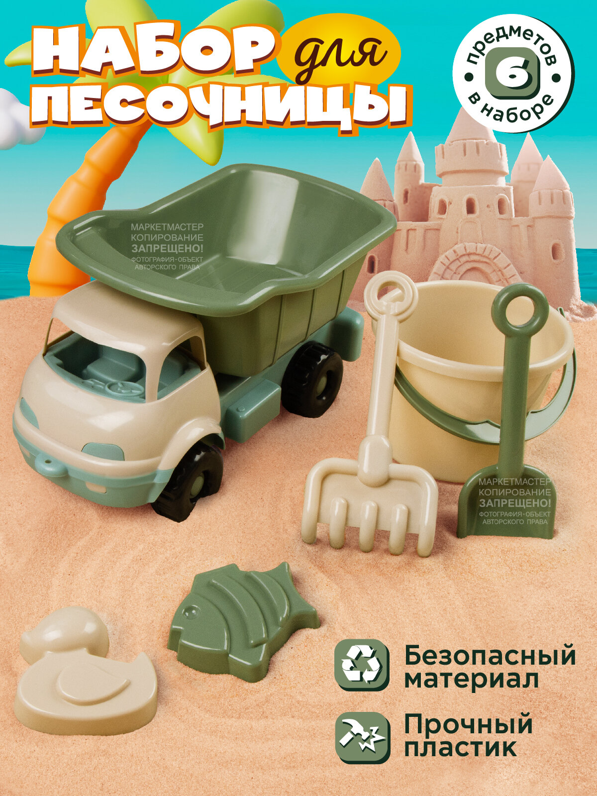Набор для песочницы с грузовиком, формочки, лопатка, грабли, лейка, JB5300665 522 ₽