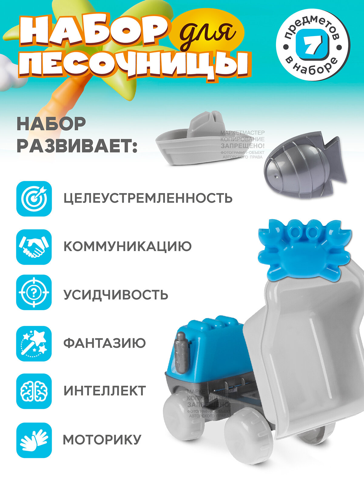 Набор для песочницы с грузовиком, формочки, лопатка, грабли, лейка, JB5300665 522 ₽