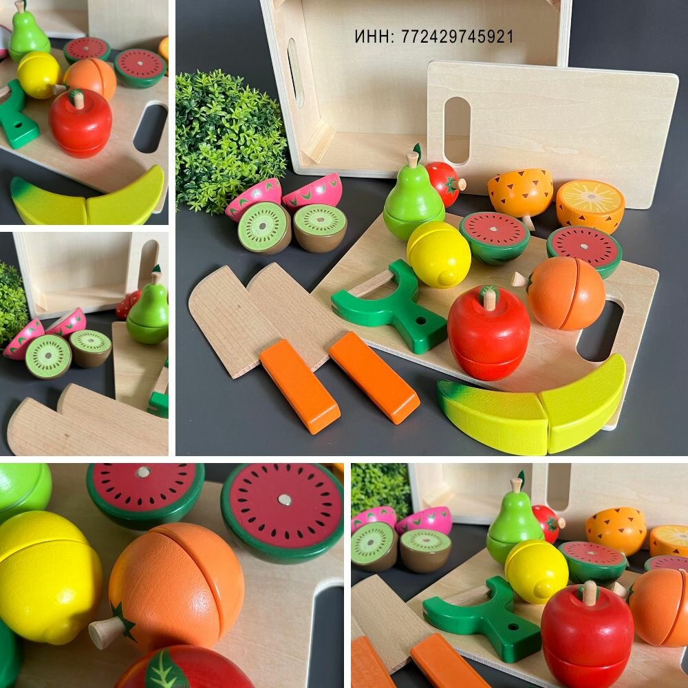 "Готовим фруктовый салат" - развивающий набор из деревянных 3Д продуктов для нарезки информация: