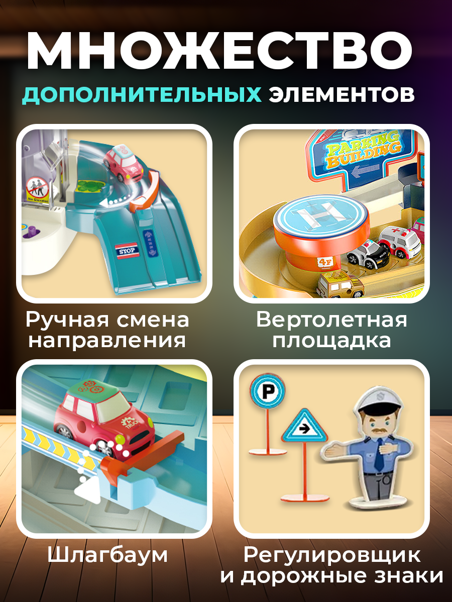 10 цен на Многоуровневая парковка для машинок с лифтом WiMi и гоночный трек, паркинг, в комплекте 6 машинок, дорожные знаки и гоночная трасса
