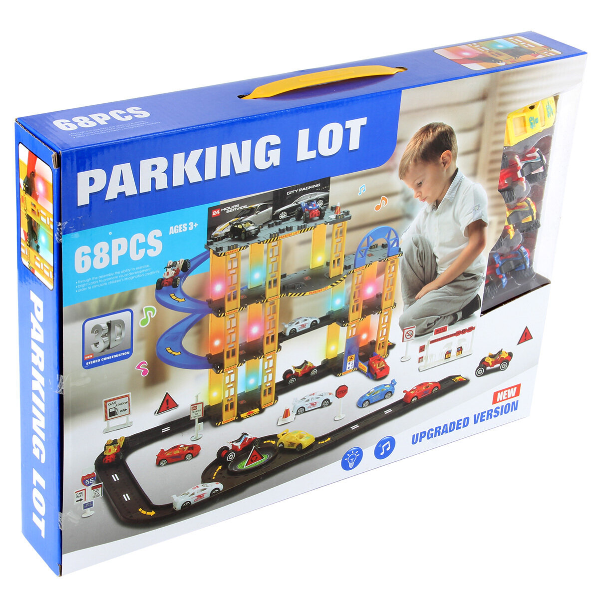 Отзывы на Многоуровневая парковка с машинкой и квадроциклами Parking Lot со световыми и звуковыми эффектами, 68х49х28 см