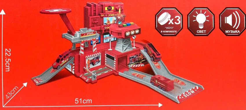 Отзывы на Детский игровой набор Парковка Fire Garage, самолет, 2 машинки 1:64, дорожные знаки, звуковое сопровождение, подсветка, пожарная стоянка, гараж, 51х