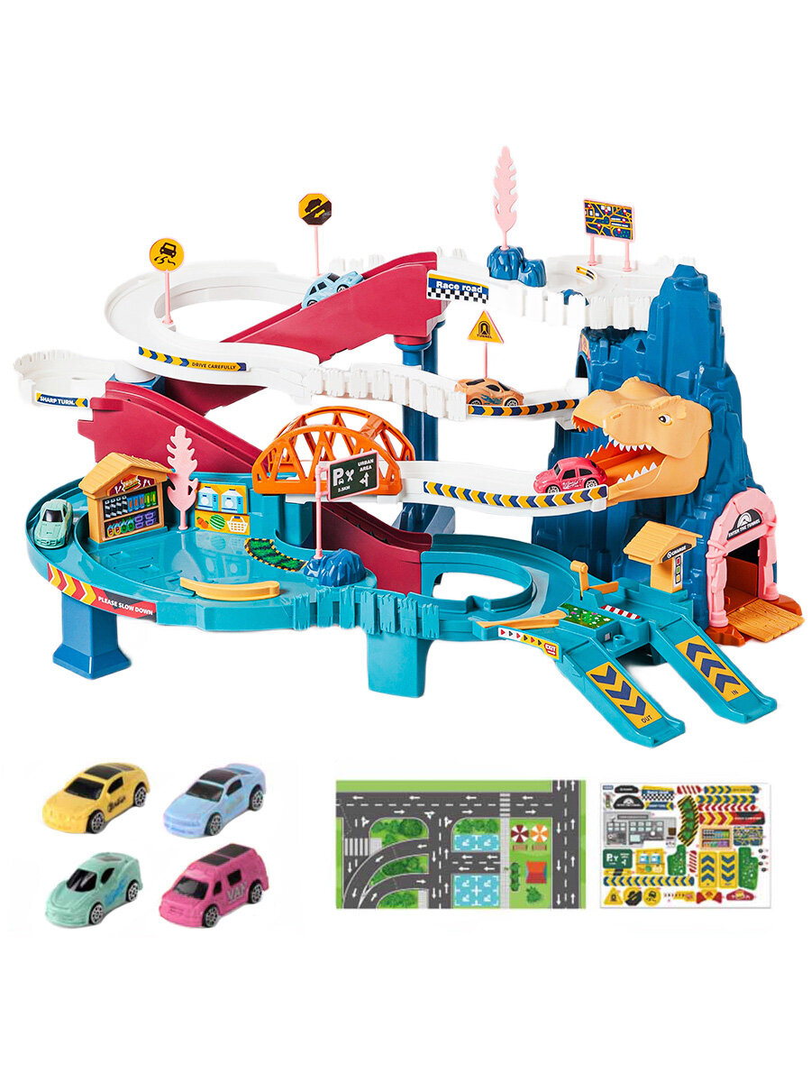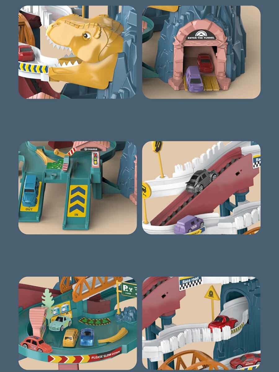 10 цен на Автотрек парковка гараж Динозавр 57х36х29 см + Подарок свет звук автолифт 4 машины