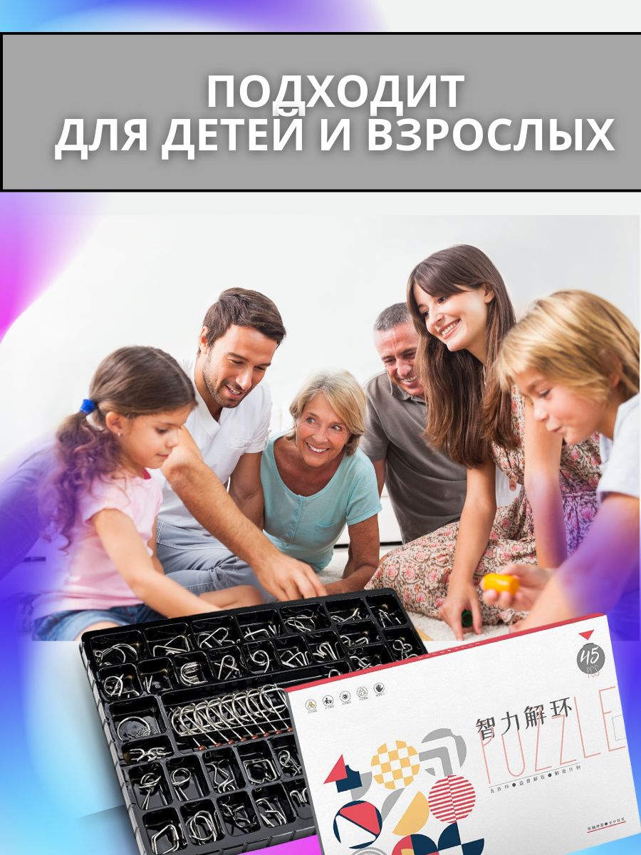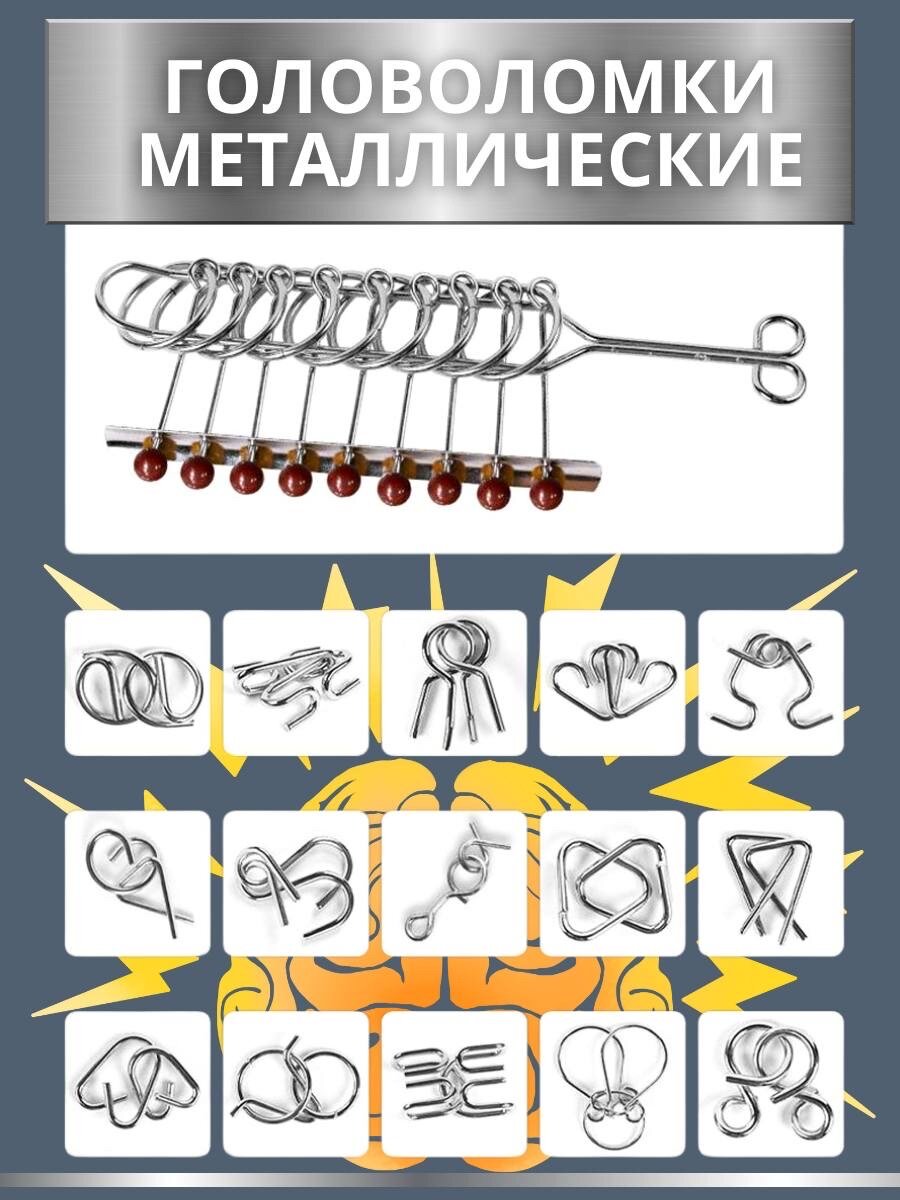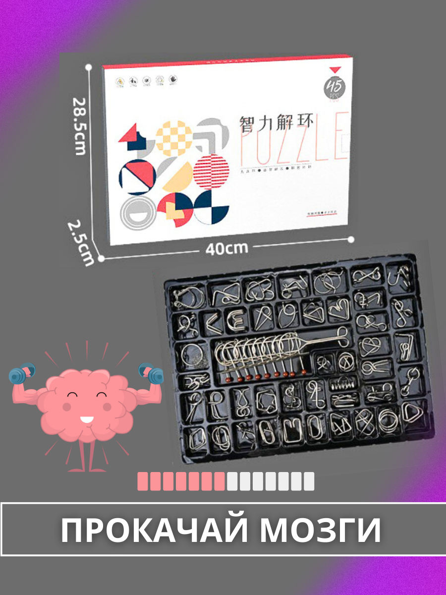 Головоломки металлические набор 45 штук/ Развивающая игра информация:
