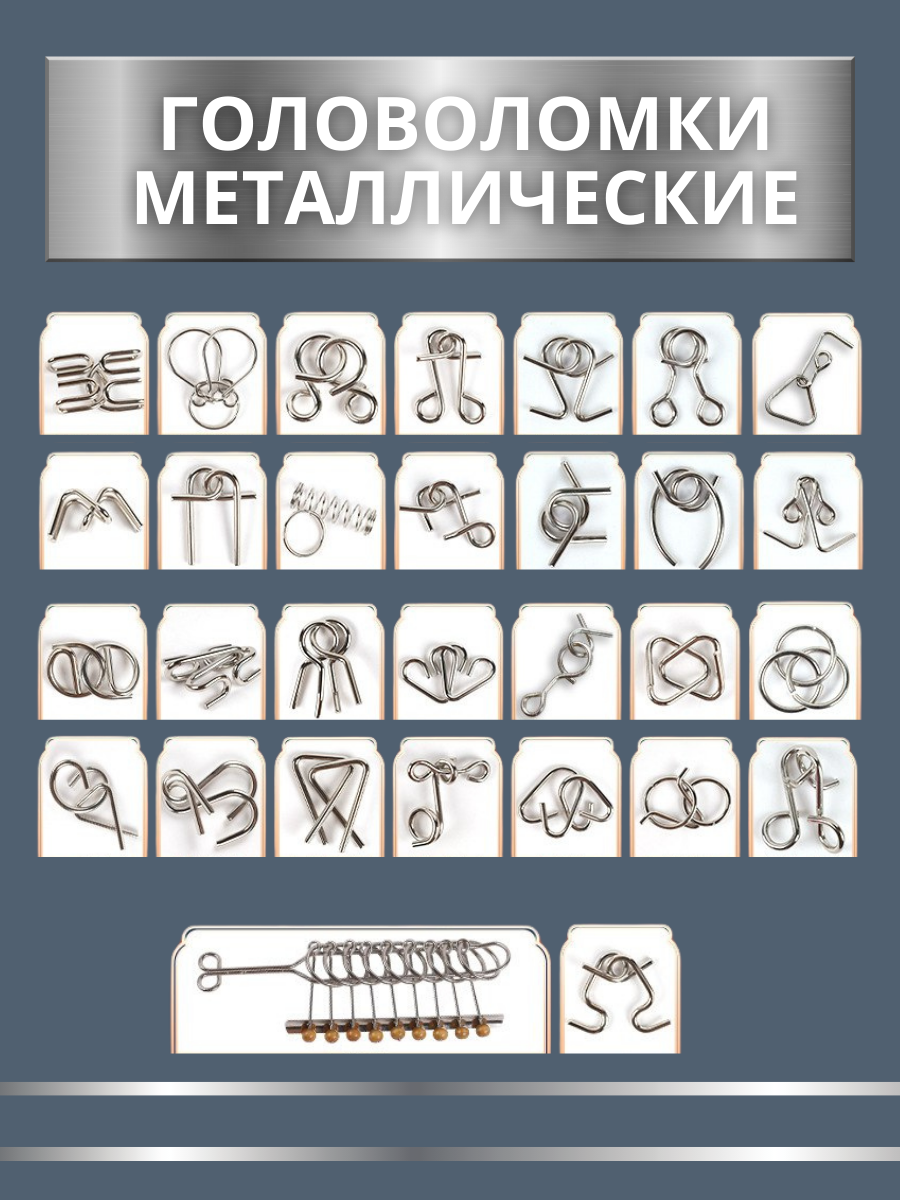 Головоломки металлические набор 30 штук/ Развивающая игра информация:
