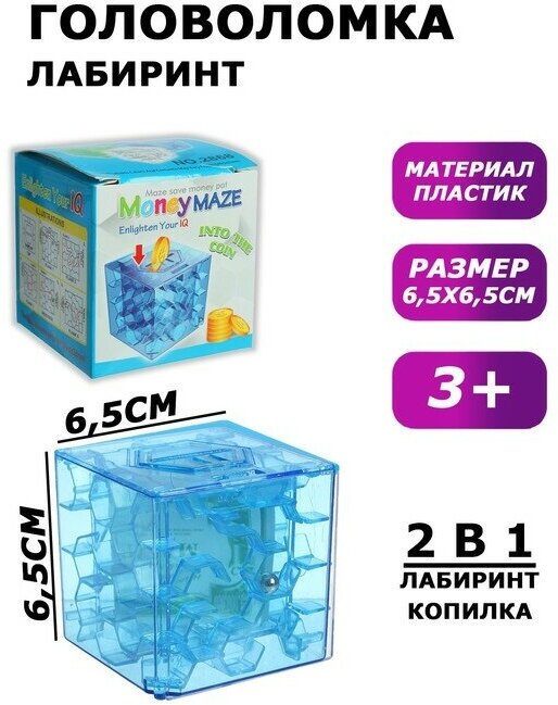 10 цен на Головоломка "Лабиринт", 2 в 1, с копилкой, материал: пластик, размер: 6,5 см х 6,5 см х 6,5 см., для детей и малышей, цвет синий