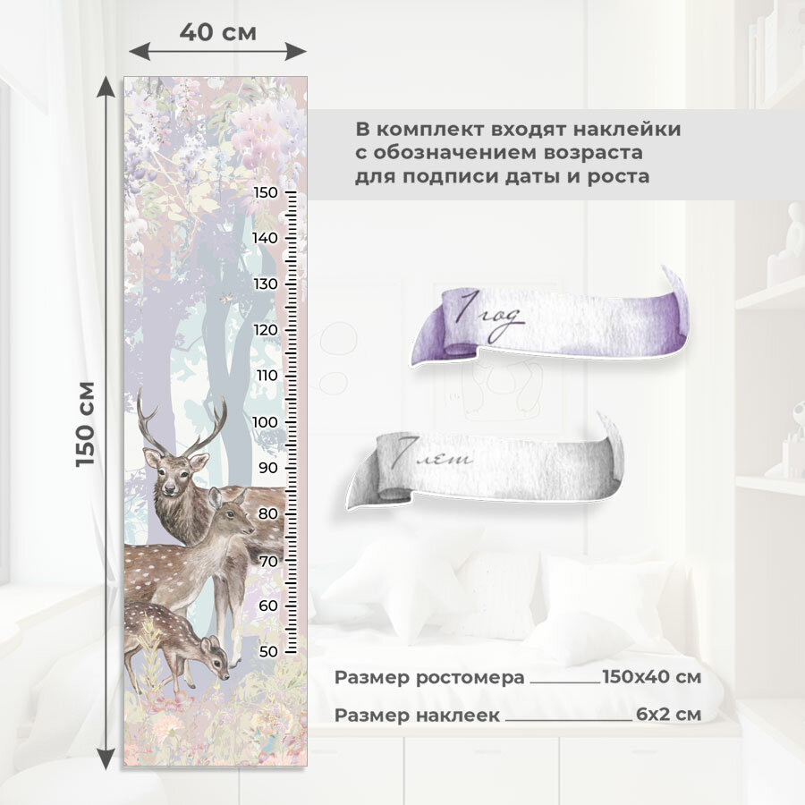 Ростомер детской на стену наклейка Олени для измерения роста OnPrint информация: