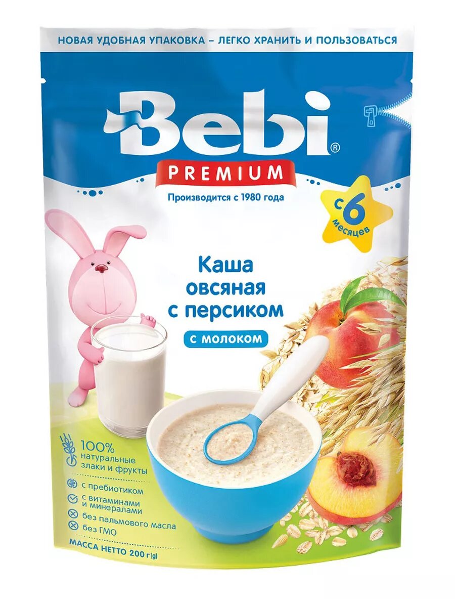 Каша молочная Bebi Premium овсяная персик с 5 месяцев 200г информация: