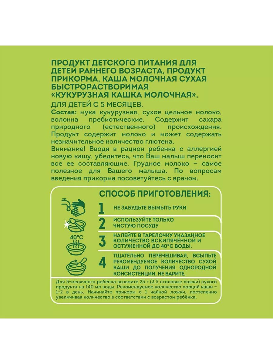 Каша Heinz молочная кукурузная с 5 месяцев 180г информация: