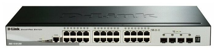 Коммутатор D-link DGS-1510-28X/A1A SmartPro 24x10/100/1000Base-T,4x10GBase-X SFP+, Stackable информация: