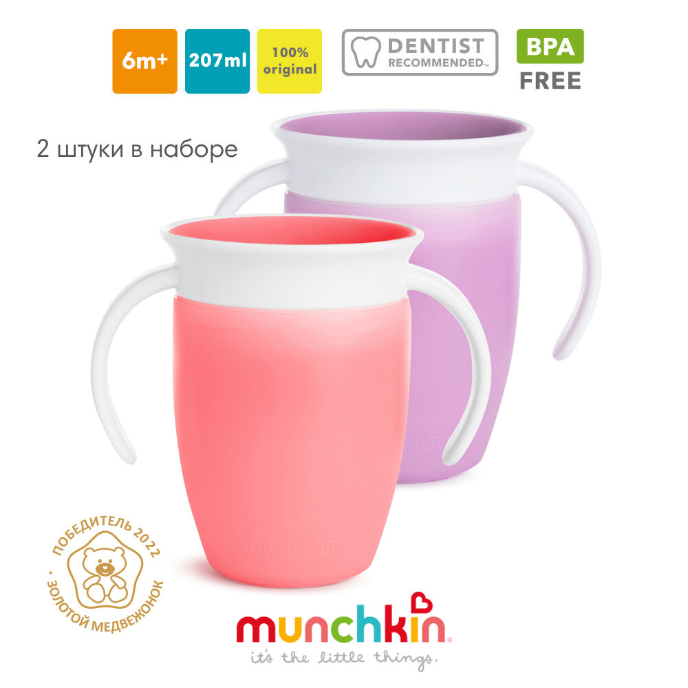 Поильник непроливайка Munchkin MIRACLE® 360° с ручками 207 мл. с 6 мес. 2 шт, розовый/пурпурный информация: