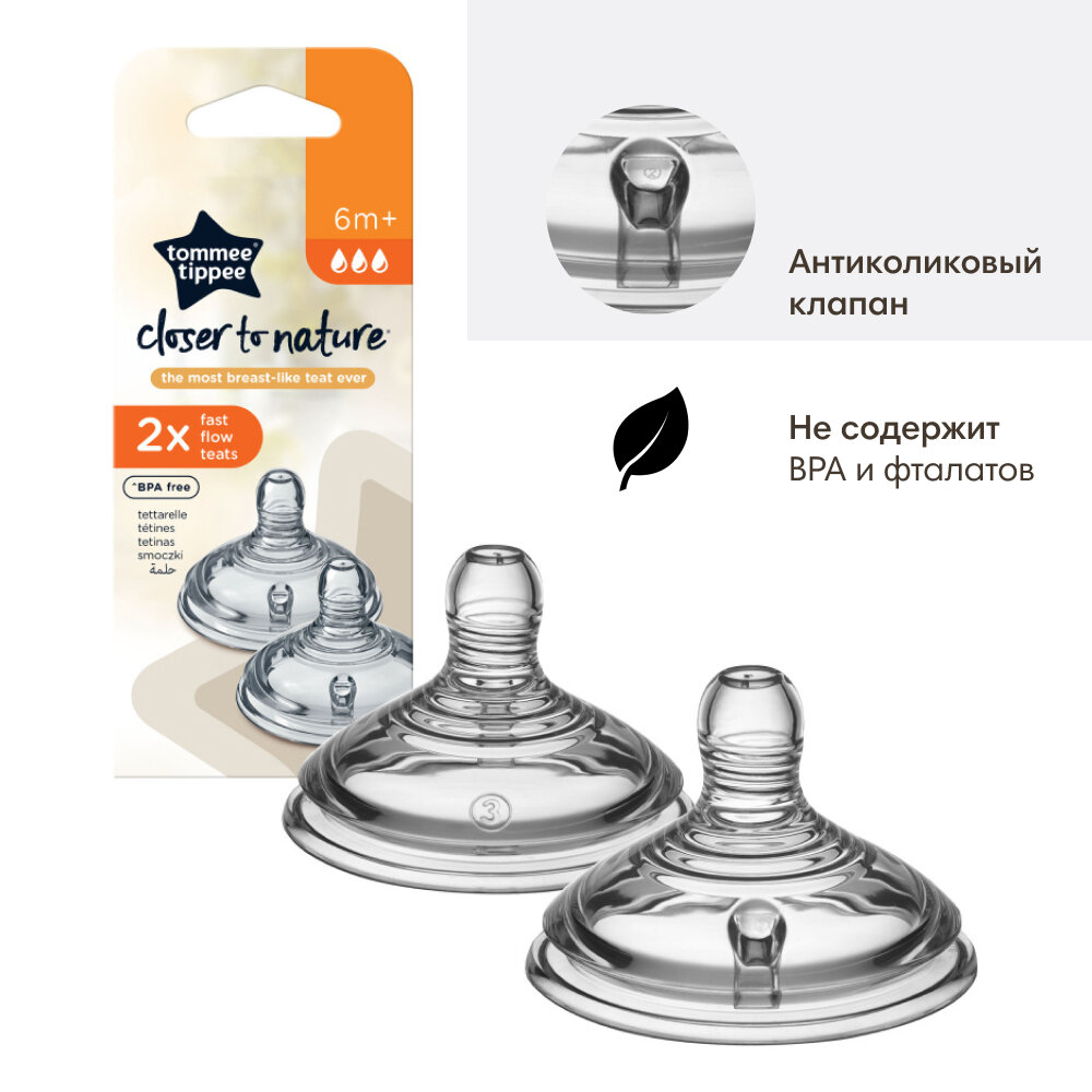 Отзывы на Соска силиконовая для бутылочки Tommee Tippee, Closer to nature, быстрый поток, 6+, 2 шт.