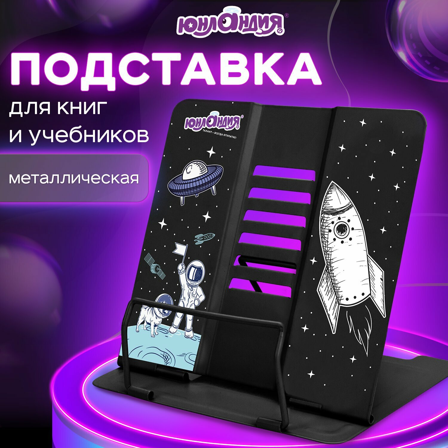 Подставка для книг и учебников юнландия "Space", регулируемый наклон, металлическая, 237577 610 ₽