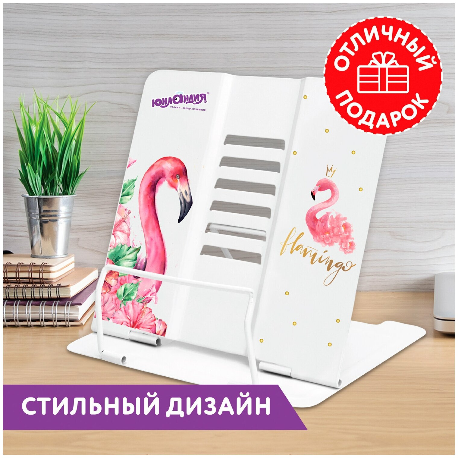 Отзывы на Подставка для книг, учебников, журналов настольная школьная Юнландия Flamingo, регулируемый угол наклона, металл, 237573