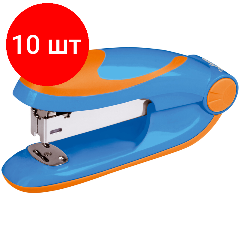 10 цен на Комплект 10 шт, Степлер №24/6, 26/6 Berlingo "Fuze" до 25л., 100 скоб, пластиковый корпус, голубой