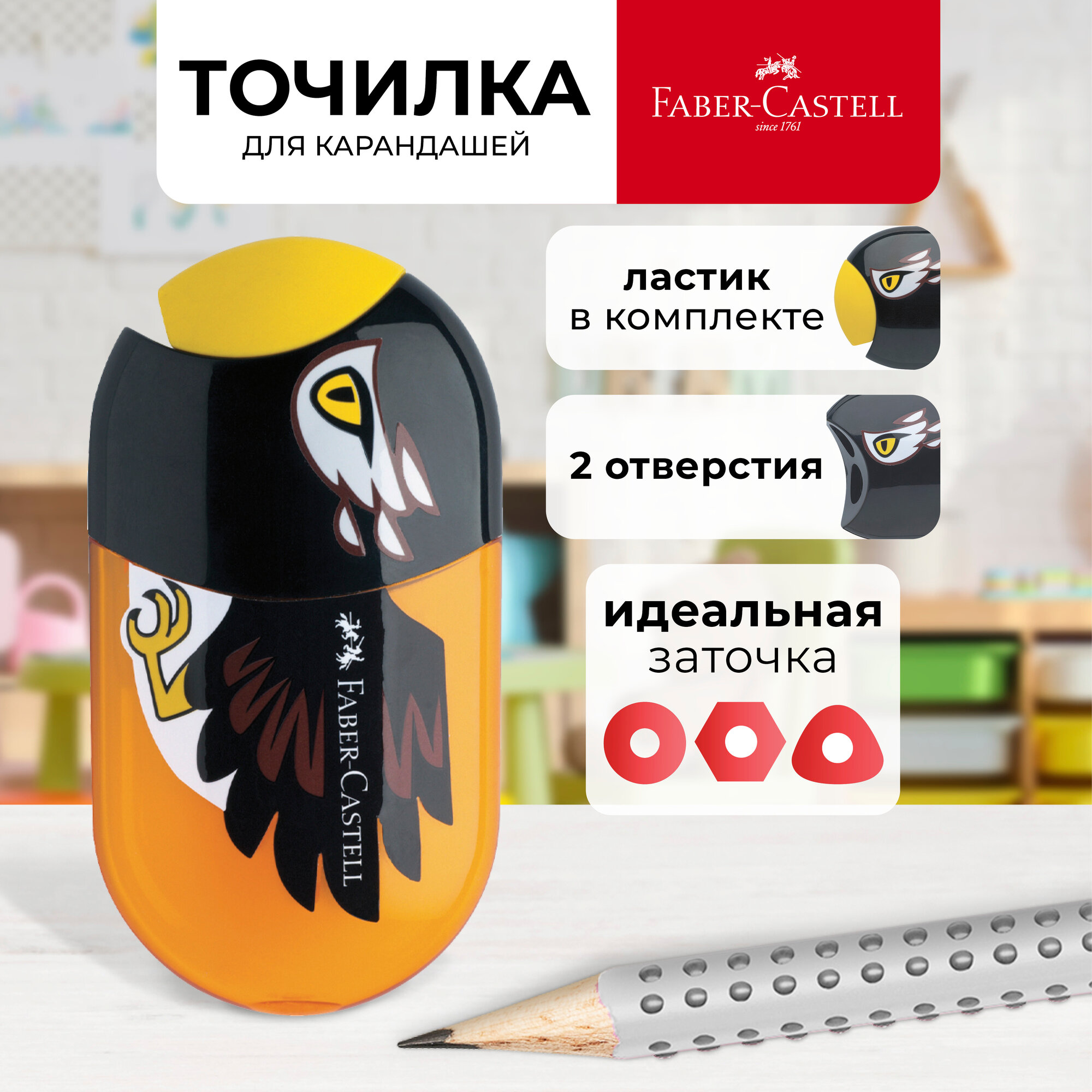 10 цен на Точилка пластиковая с ластиком Faber-Castell "Eagle", 2 отверстия, контейнер