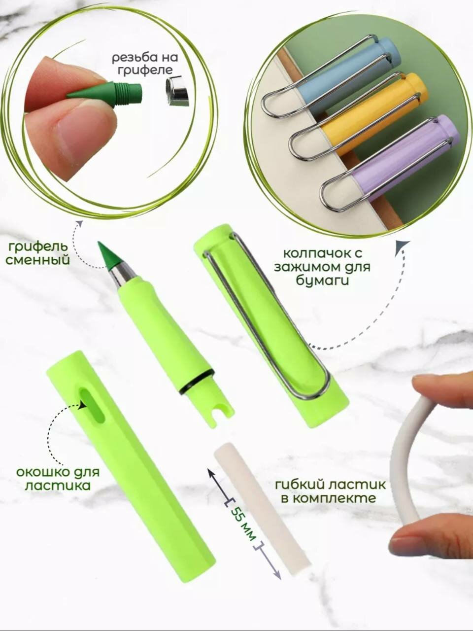 Отзывы на Вечный карандаш цветной с ластиком, разноцветный набор из 12 шт