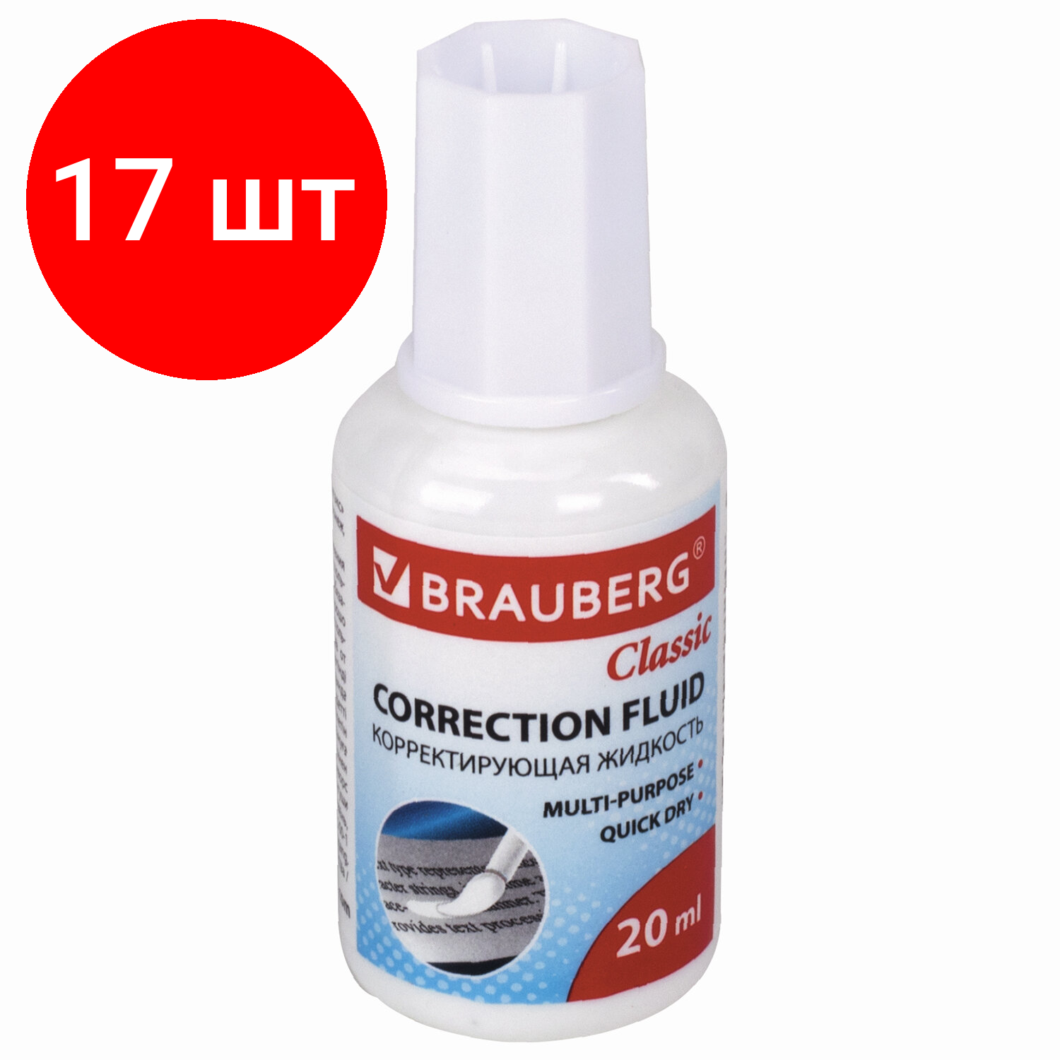 Комплект 17 шт, Корректирующая жидкость BRAUBERG "Classic", быстросохнущая, 20 мл, с кисточкой, 220255 информация: