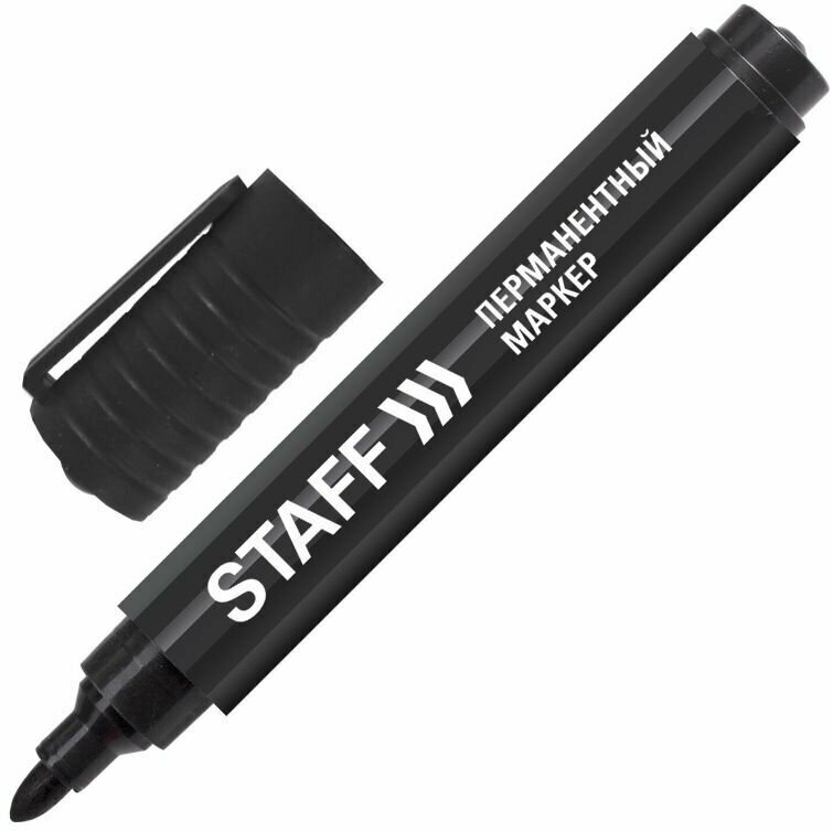 Маркеры перманентные (нестираемые) для рисования и письма черные, Комплект 3 штуки, колпачок для вскрытия коробок, Staff Pm-150, 880749