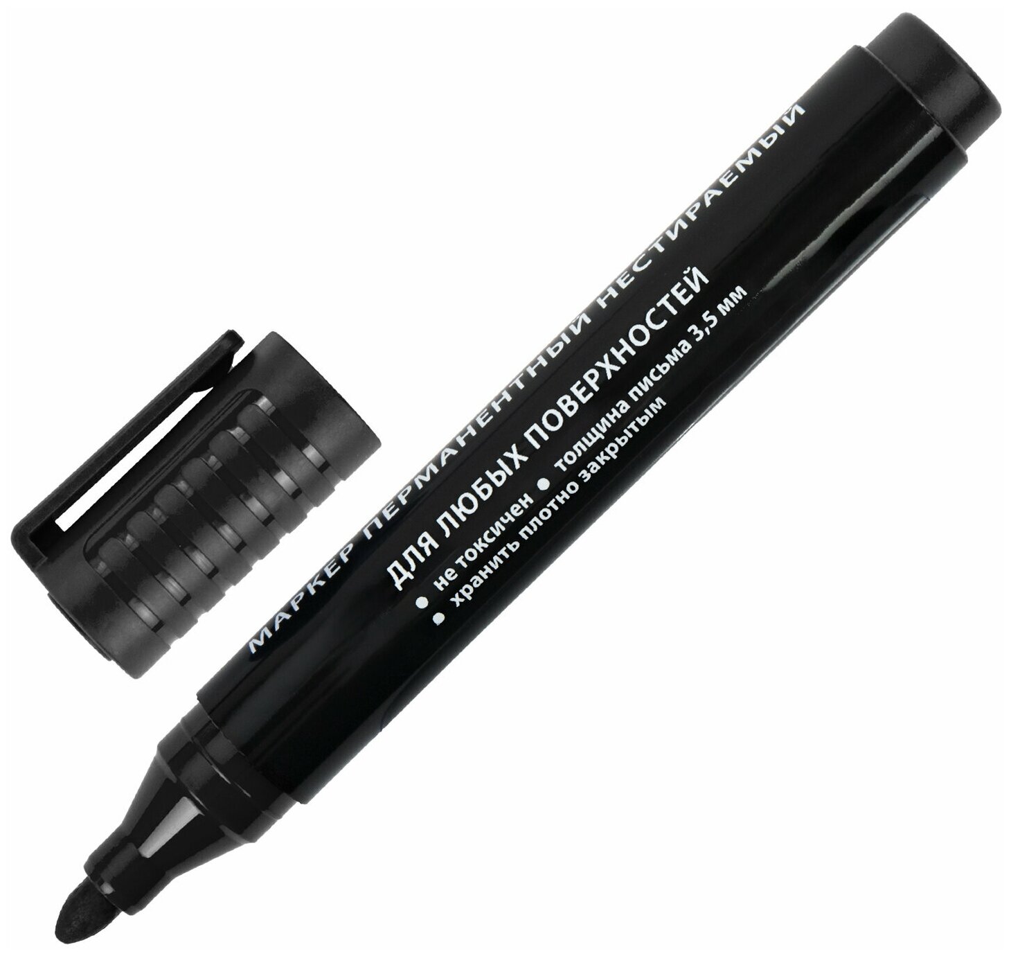 Маркер перманентный черный тонкий 0,8мм комплект 12 штук, BRAUBERG, 880250