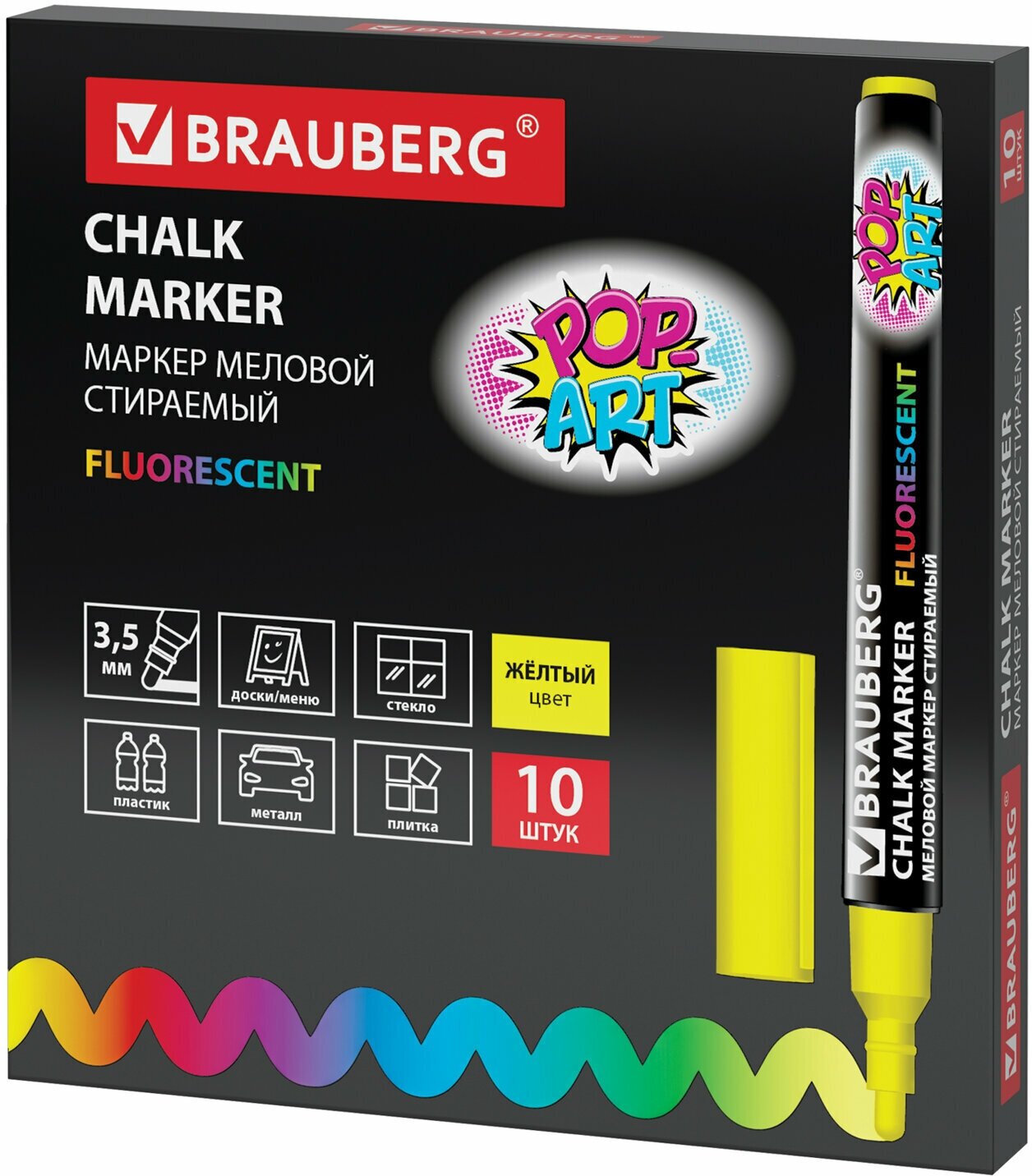 Маркер / фломастер меловой стираемый для доски Pop-art Желтый, 3,5 мм, стираемый, для гладких поверхностей, Brauberg, 151520 информация: