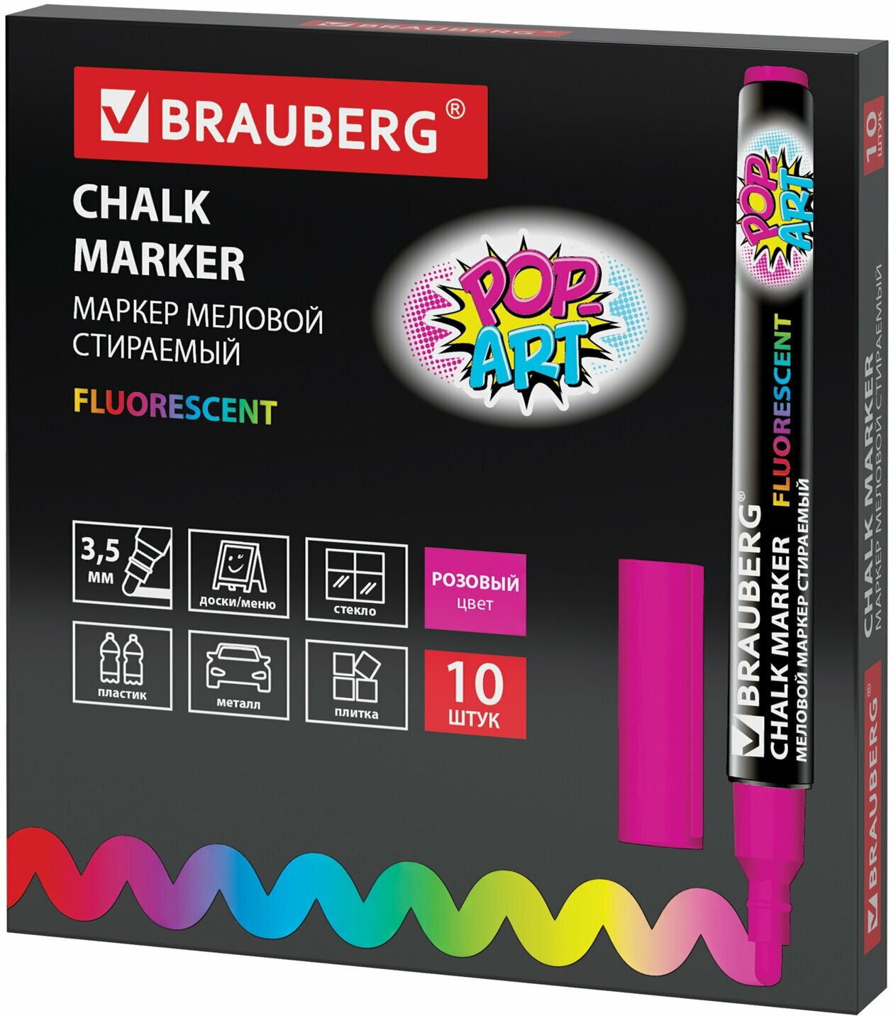 10 цен на Маркер / фломастер меловой стираемый для доски Pop-art Розовый, 3,5 мм, стираемый, для гладких поверхностей, Brauberg, 151522