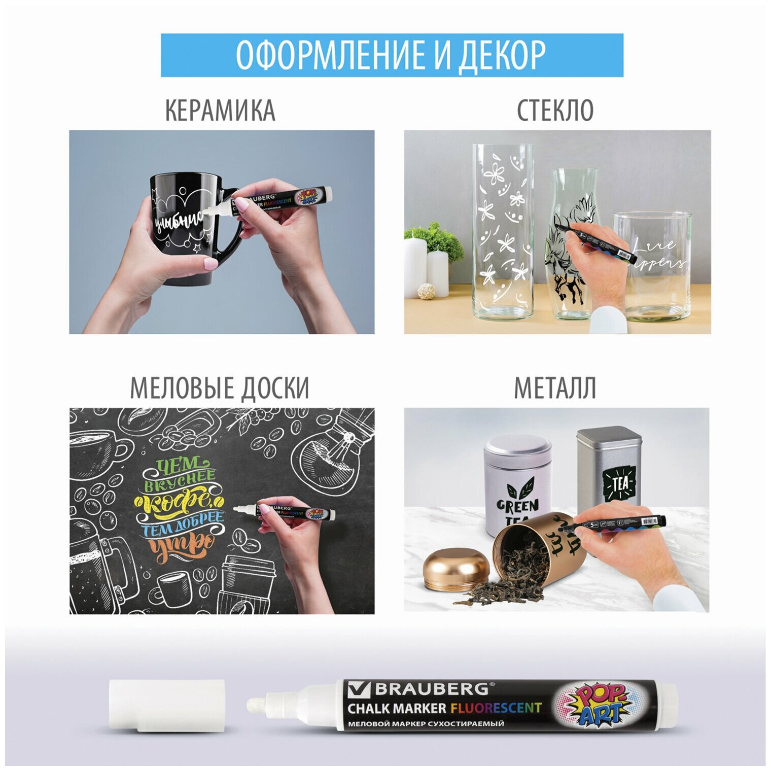 Отзывы на Маркер меловой "POP-ART" черный, 3,5 мм, стираемый, для гладких поверхностей, BRAUBERG, 151525