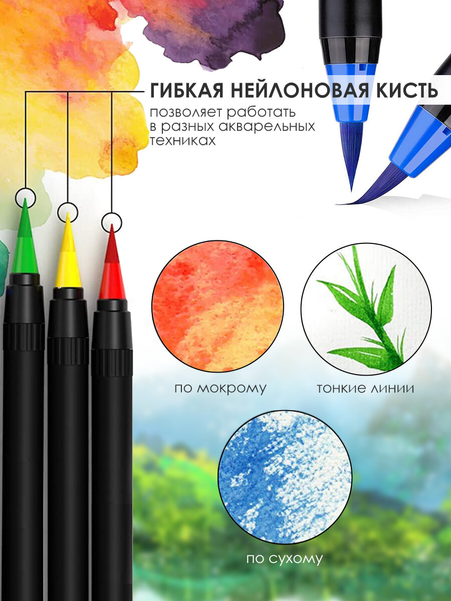 | Особенности | акварельные / быстросохнущий / для левшей / с клипом / светостойкий / эргономичная зона захвата |