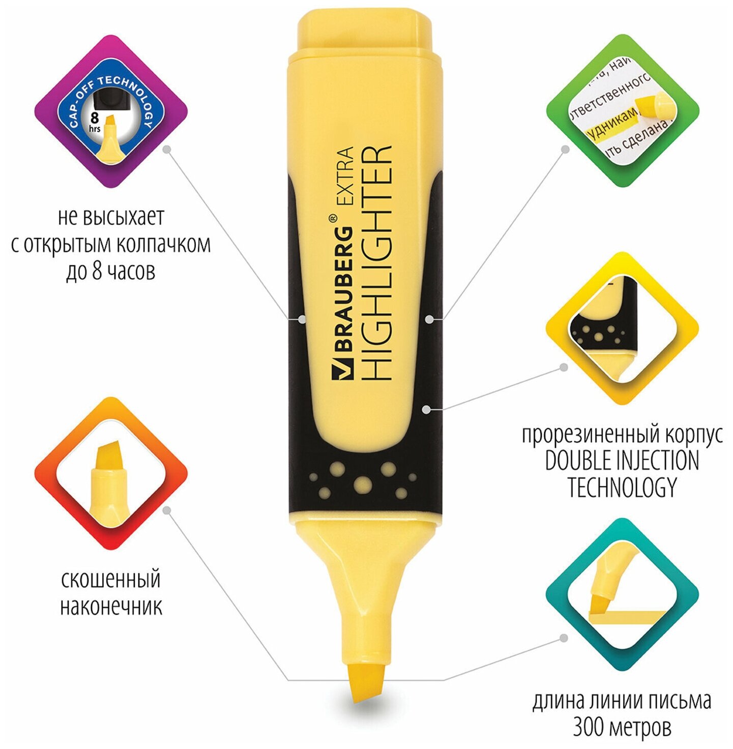 Набор текстовыделителей BRAUBERG 4 шт., ассорти, "EXTRA PASTEL", прорезиненный корпус, линия 1-5 мм, 151756, 2 набор в компл. информация: