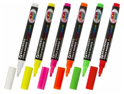 Маркеры / фломастеры меловые стираемые для доски и других поверхностей Pop-art, Набор 6 Цветов, 3,5 мм, стираемые, для гладких поверхностей, Brauberg, 151526
