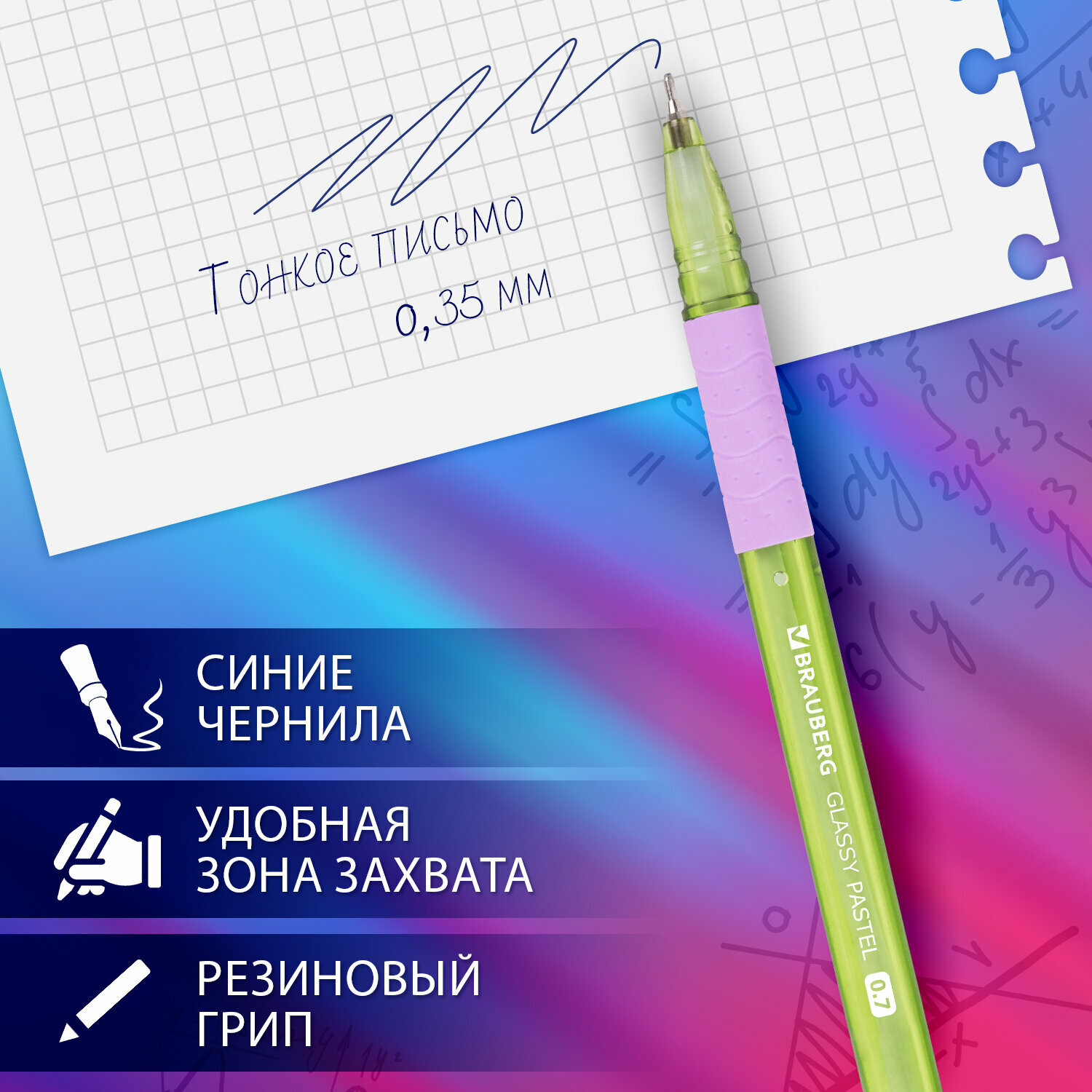 Отзывы на Ручки шариковые синие набор 4 штуки тонкие для школы, линия письма 0,35 мм, Brauberg Glassy Pastel Mix, 881024
