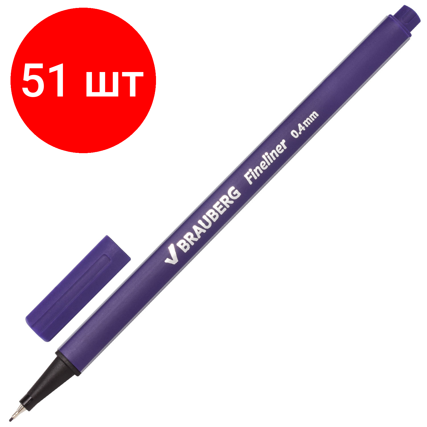 Комплект 51 шт, Ручка капиллярная (линер) BRAUBERG "Aero", фиолетовая, трехгранная, металлический наконечник, линия письма 0.4 мм, 142255 информация: