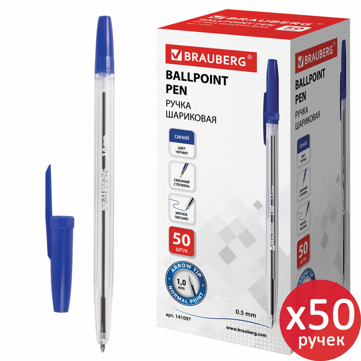 Ручка шариковая BRAUBERG Line, комплект 50 штук, синяя, узел 1мм, линия письма 0,5мм, 880003 информация: